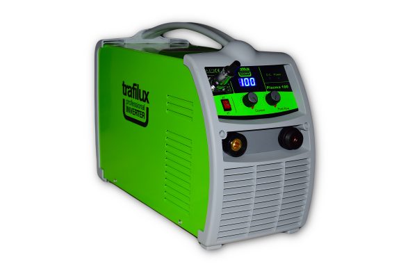 To inwentorowa przecinarka plazmowa, do cięcia ręcznego lub maszynowego, zasilana z sieci 3-fazowej, wyposażona w system zajarzania bezstykowego HF. Przeznaczona do prac w warunkach halowych, warsztatowych, produkcyjnych. Swoje zastosowanie znajduję w zamkniętych pomieszczeniach, jak i pracach terenowych np. przy cięciu złomu, odpadów metalowych. Zaletą tego urządzenia jest wysoka jakość wykonania, solidność i trwałość zastosowanych komponentów elektronicznych. Plazma 100 CNC posiada możliwość pracy z automatycznymi wypalarkami, cyfrowy wyświetlacz prądu cięcia, płynną regulację opóźnienia wypływu gazu, oraz 2takt/4takt, możliwość podłączenia chłodnicy. Na tylnym panelu znajduję się wbudowany zespół przygotowania powietrza z reduktorem i manometrem. Urządzenie służy do cięcia różnego rodzaju metali, w tym stopów stali, miedzi, mosiądzu, aluminium. Przecinarka plazmowa TRAFILUX, zapewnia możliwość cięcia w wielu płaszczyznach, oraz w trudno dostępnych miejscach. Palnik plazmowy dołączony do urządzenia jest wysokiej klasyoryginalnym palnikiem TRAFIMET A101, który umożliwia zastosowanie różnego rodzaju nasadek oraz dysz tnących, dzięki czemu istnieje możliwość konfiguracji palnika pod indywidualne potrzeby użytkownika. Atutem konstrukcyjnym urządzenia są tranzystory wykonane w technologii IGBT. Cechą charakterystyczną dla tego typu tranzystorów jest, mniejsze zużycie energii, mniejsze zakłócenia elektromagnetyczne, przy większej wydajności oraz mocniejszym i stabilniejszym łuku.