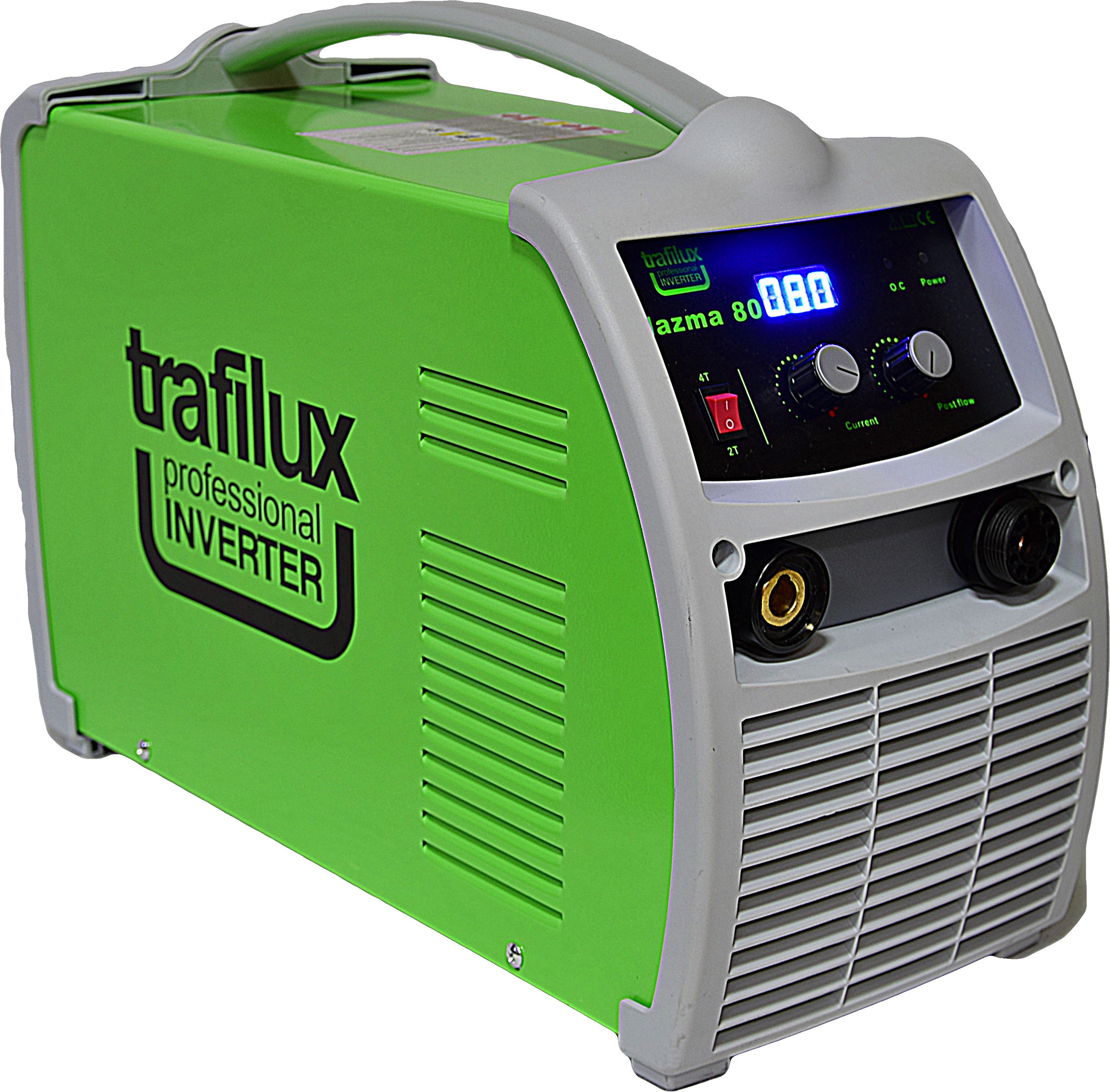 To inwentorowa przecinarka plazmowa do cięcia ręcznego lub maszynowego, wyposażona w moduł MMA, służąc do spawania elektrodami otulonymi. Urządzenie posiada moduł HF powodujący bezstykowe zajarzenie łuku plazmowego. Urządzenie stworzone z myślą o użytkowaniu w warunkach warsztatowych jaki i przemysłowych. Uniwersalność urządzenia czynie je znakomitym narzędziem do przeprowadzania wszelkich prac polowych np. cięcia złomu, odpadów metalowych, prac naprawczych z wykorzystaniem modułu MMA. Przecinarka posiada funkcję zajarzenia łuku w trybach 2taktu lub 4 taktu, oraz opóźnienie wypływu powietrza. Urządzenie sprawdzi się podczas cięcia różnego typu metalów np. stopów stali, miedzi, mosiądzu, aluminium. Plazma 80 wyposażona jest w oryginalny palnik P80 – 6m, dający możliwość stosowani różnych konfiguracji części zamiennych, nasadek, cyrkli oraz części do żłobienia, czy też cięcia kontaktowego. Atutem urządzenia są tranzystory wykonane w technologii IGBT, dające mniejsze zużycie energii, mniejsze zakłócenia elektromagnetyczne przy jednocześnie większej wydajności oraz bardziej stabilnym łuku.